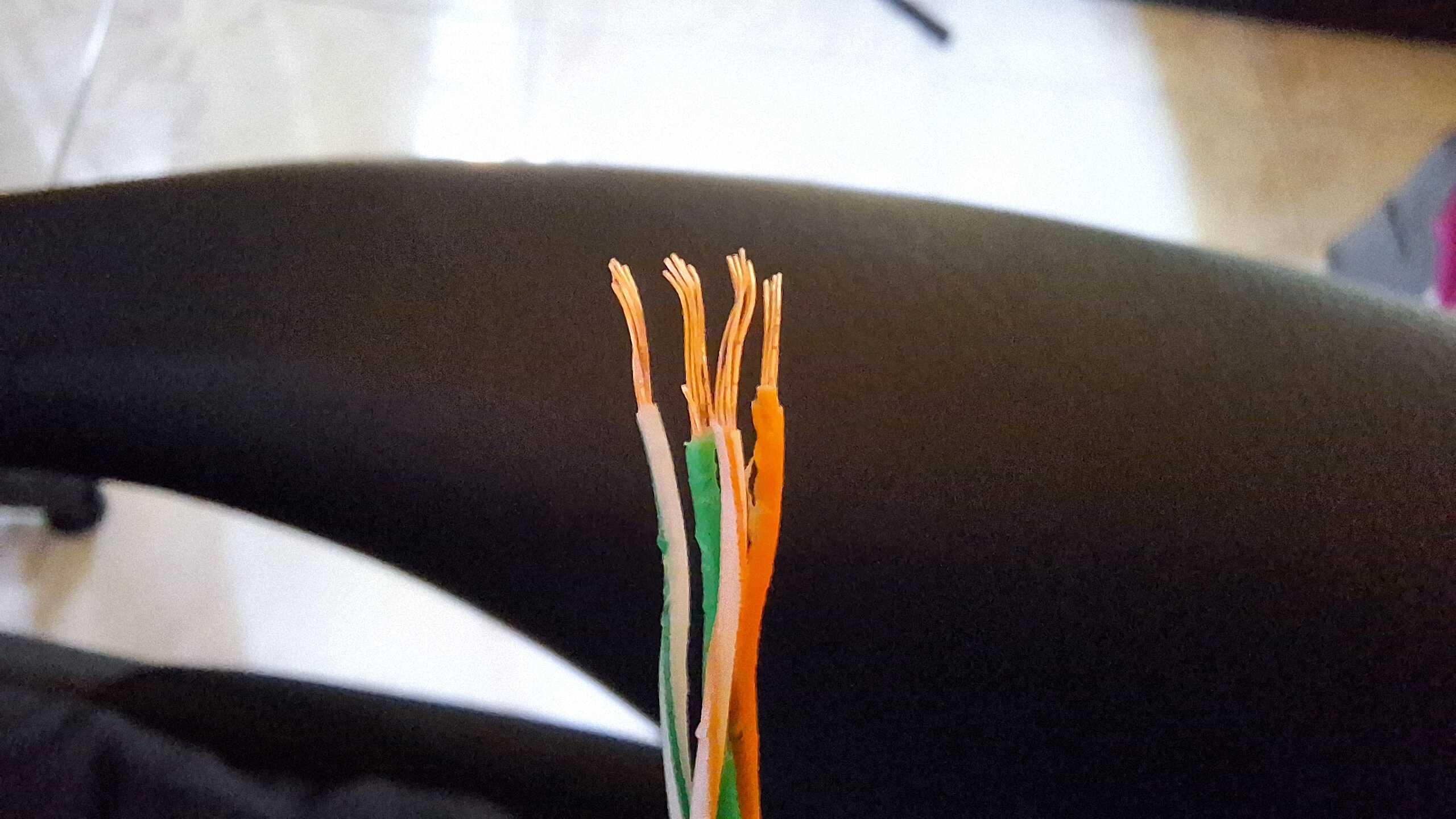 I cut the cable at one of its end. Then, I peeled off the outer cable layer, leaving the smaller cable exposed. I ended up with this: