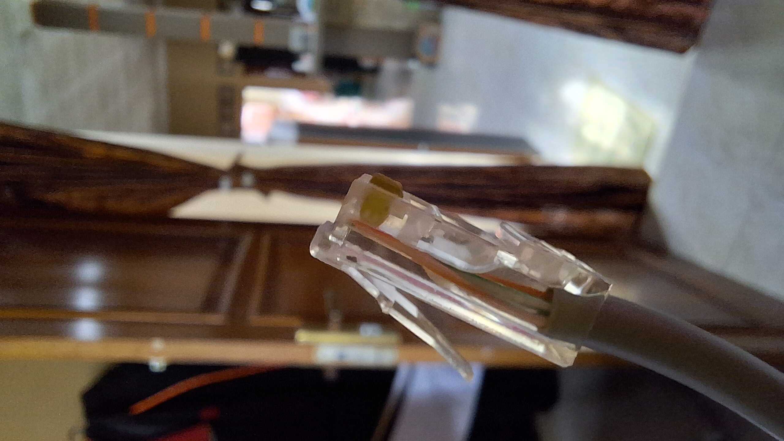 I tried to slide the overly exposed cable into the RJ45 only to find out that it was so hard, and that it was not supposed to be inserted like that (silly me!).