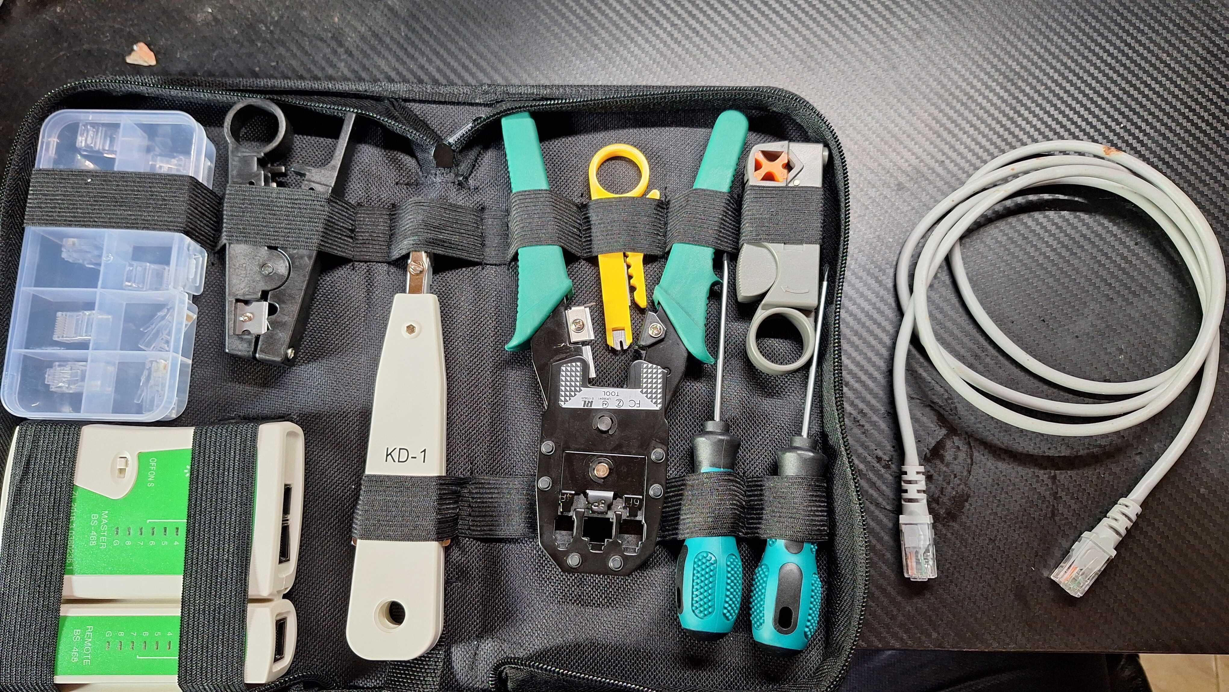 In short, one set of crimping toolkit and an unused ethernet cable.